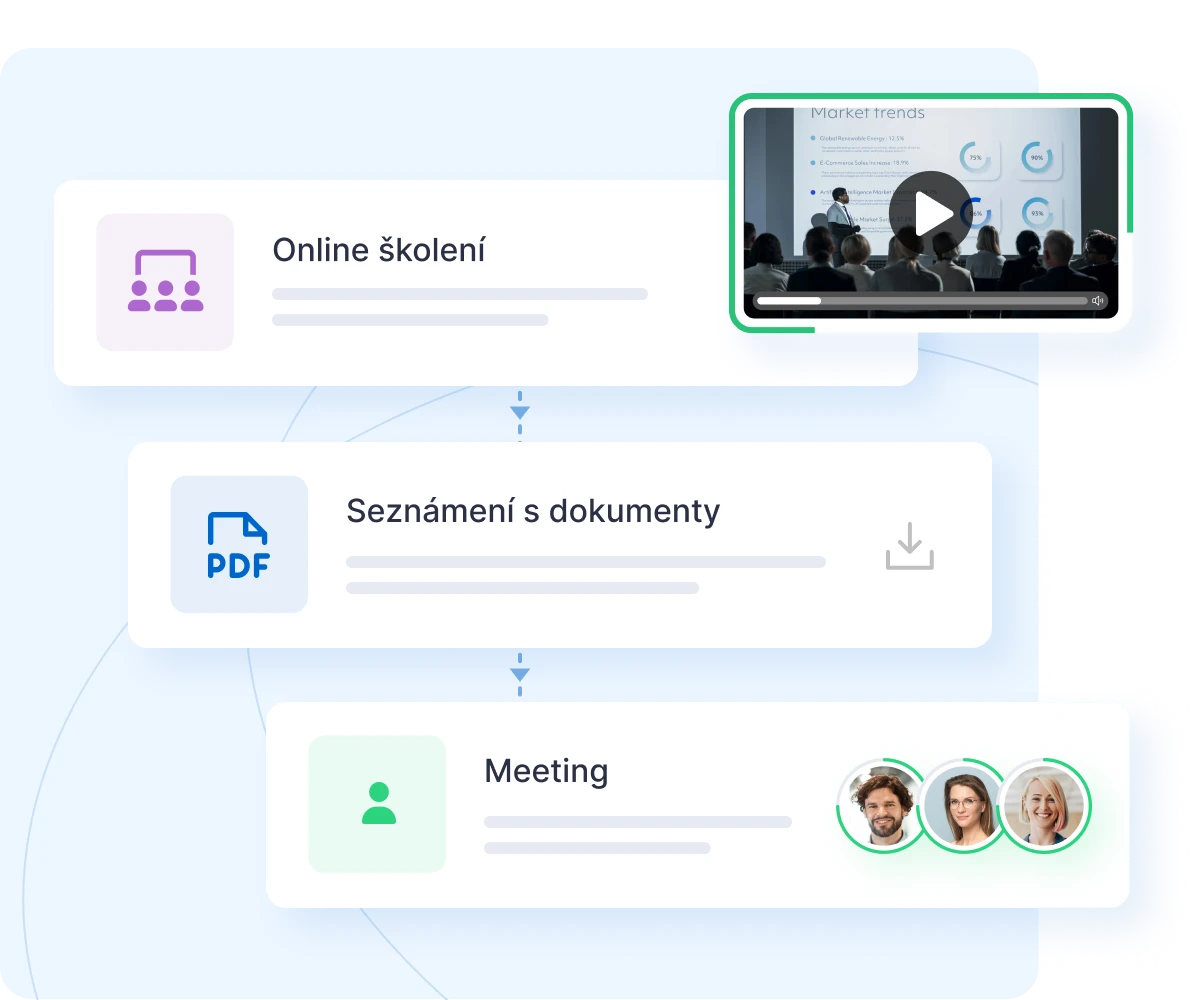 Digitize and automate the entire onboarding process with EDUNIO (online training, document familiarization, meetings with colleagues, etc.).